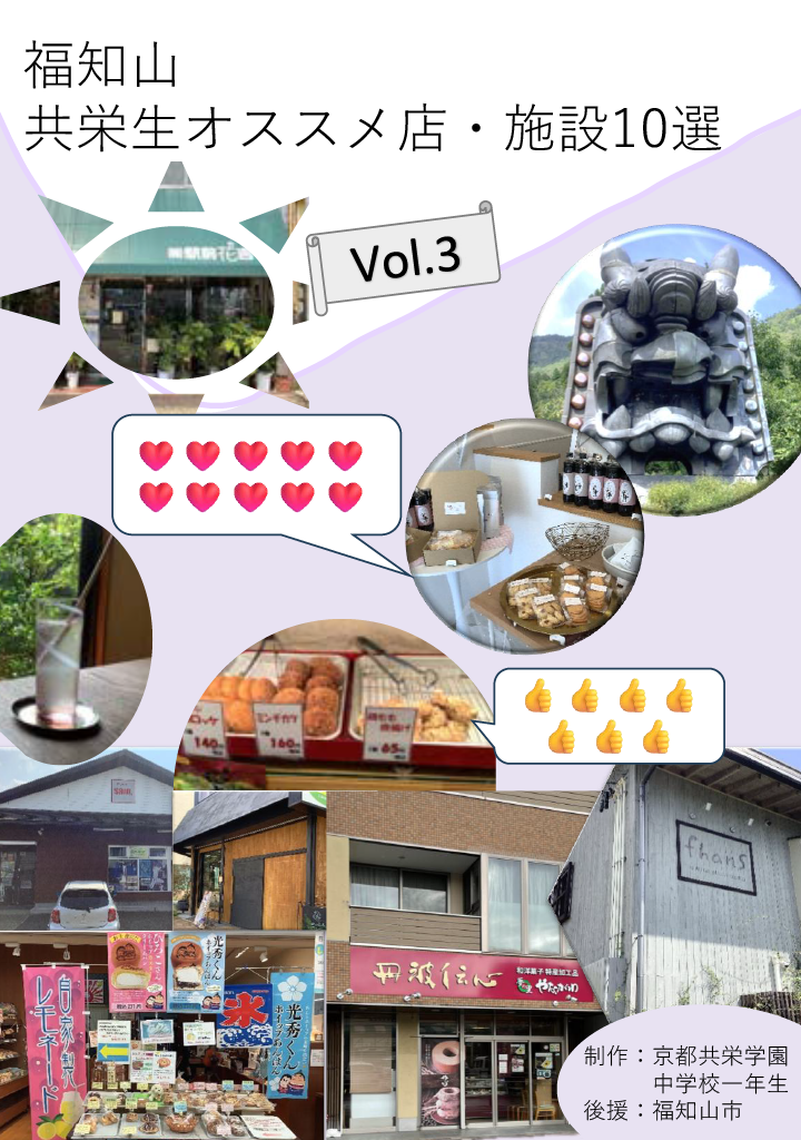 「福知山をPR!」と題して、今年も中1の総合的な探究の時間で行われた、地域調べの冊子が完成しました。