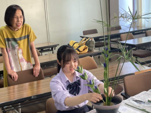 茶道・華道部 Home > 高等学校クラブ > 茶道・華道部 > 第2回 華道実習 2025年7月15日 第2回 華道実習 7月7日に2回目の華道実習を実施いたしました。 今回は前回までの「自由花」ではなく、ルールに基づいて花を生ける「生花(しょうか)」に挑戦しました。 初めての挑戦でしたが、指導された先生からお褒めの言葉をいただくことができました。 関連記事: 第1回 華道実習 第2回 茶道実習 第2回 調理実習 部活体験(第1回) 呈茶 人気記事: 卒業式 卒業式 文化祭に向けて① 文化祭 卒業 【中学】入試イベント 【高校】入試イベント 修学支援金制度 アクセス 在校生専用