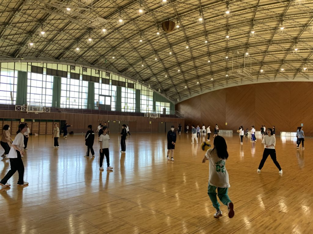 体育実技は福知山市民体育館で実施しました。本校よりも広くて、更衣室や保健室もあるので、会場としては良いのですが、駅から歩いて20分というのが、なかなか…。