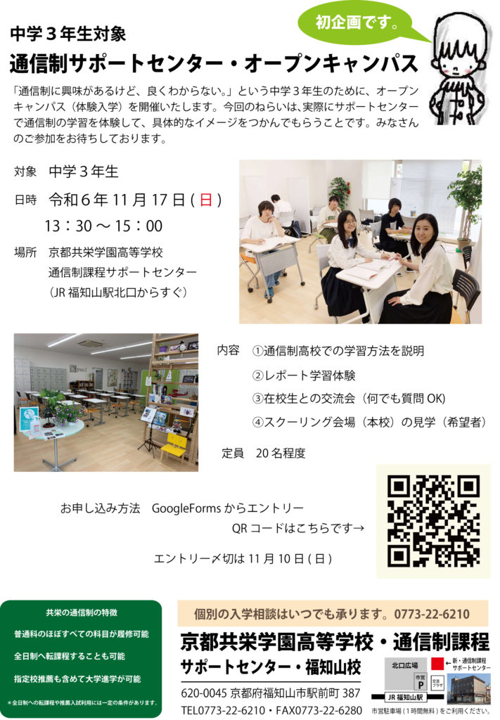 個別相談申し込みののフォームはhttps://www.kyoei.ed.jp/fukuchiyama/consul…